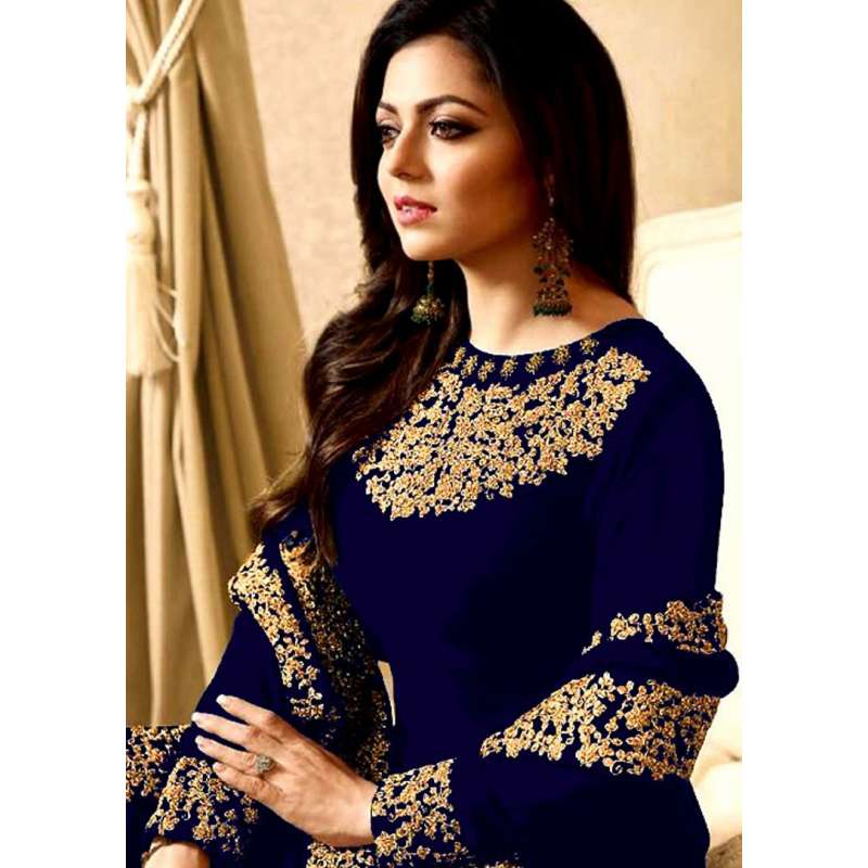 A Gorgeous New Georgette/Net Semi stitched dress with thread embroidery, zari work and stone work.