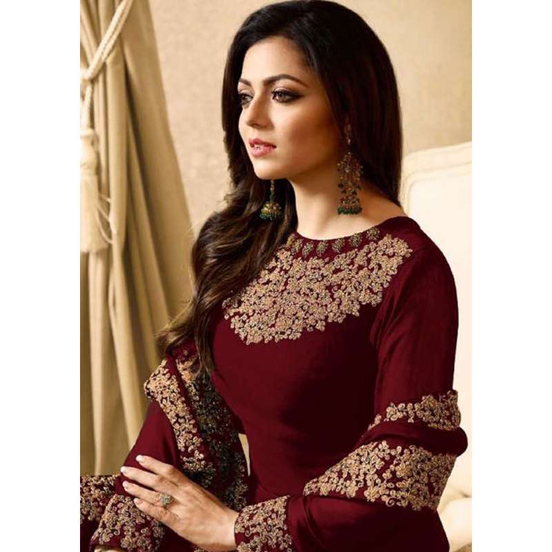 MAROON EMBROIDERED FLOOR LENGTH INDIAN ANARKALI SUIT