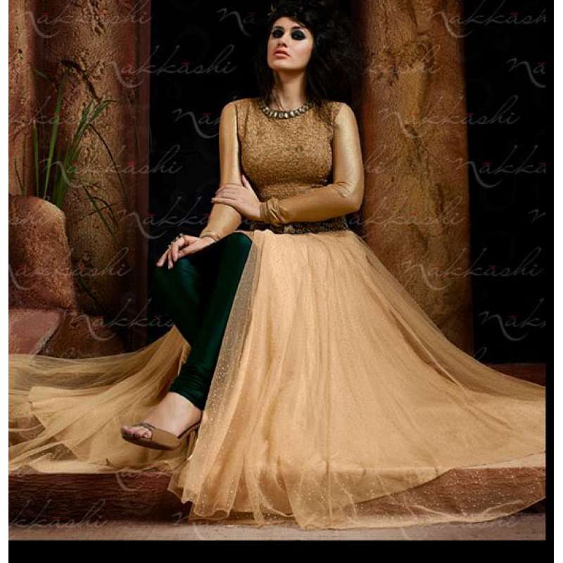 Top in semi stitched format with gown style feel with sparkle effecton net and other one in straight suit style with self monotone embroidery on body georgette fabric.