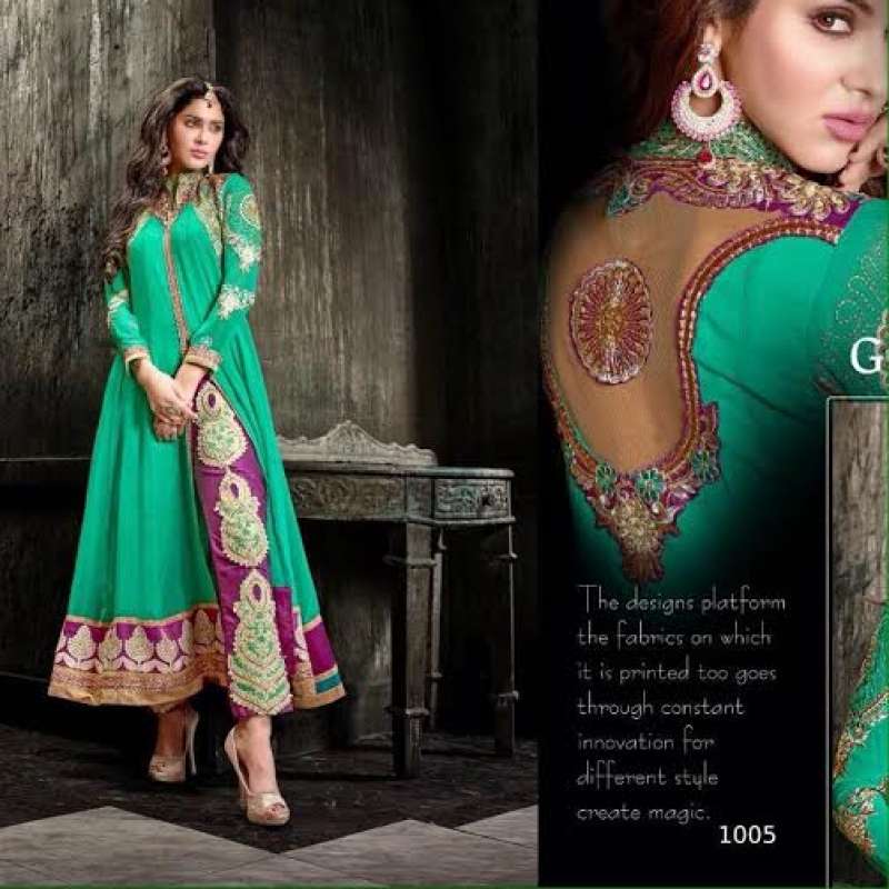 Green Princess Dress Purple Trouser Anarkali