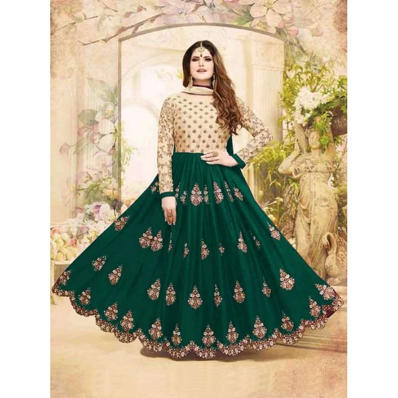 Zareen Kahn Beige and Green Royal Anarkali Wedding Wear Gown