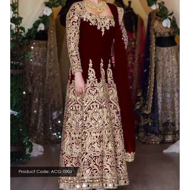 MAROON INDIAN DESIGNER BRIDAL WEDDING GOWN