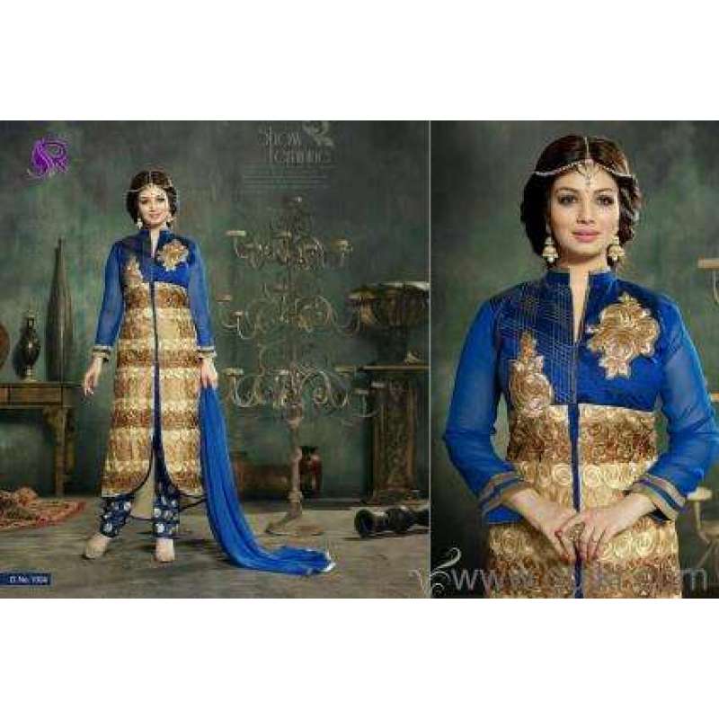 U1004 BLUE AND GOLD AYESHA TAKIA ANARKALI STYLE SALWAR KAMEEZ SUIT