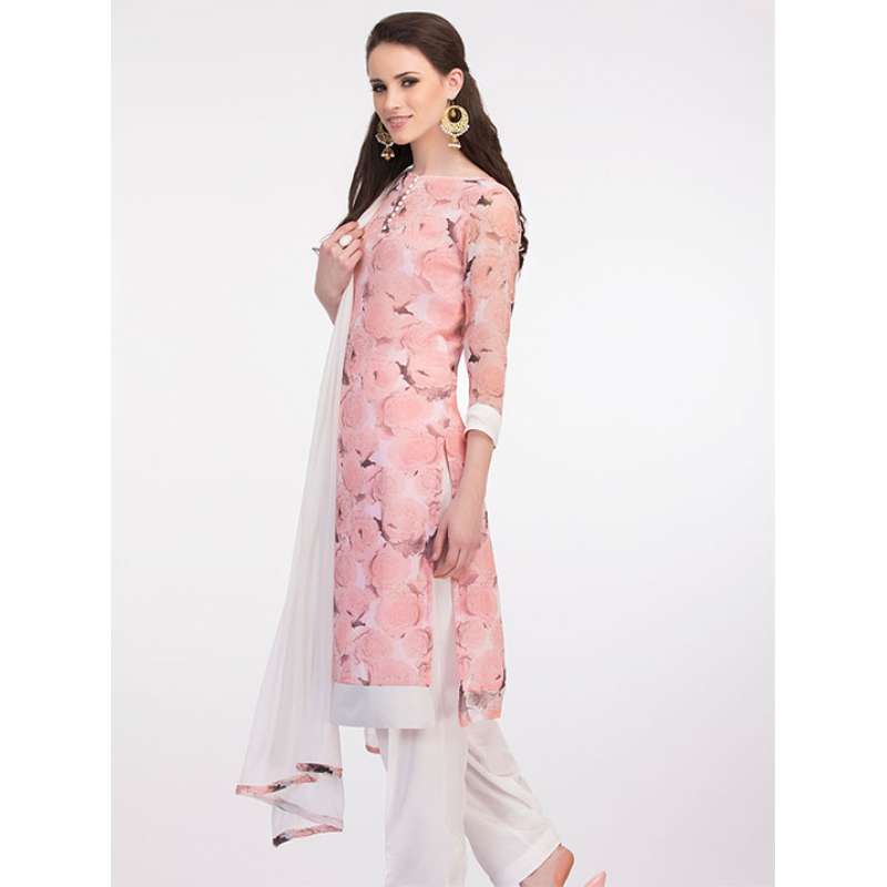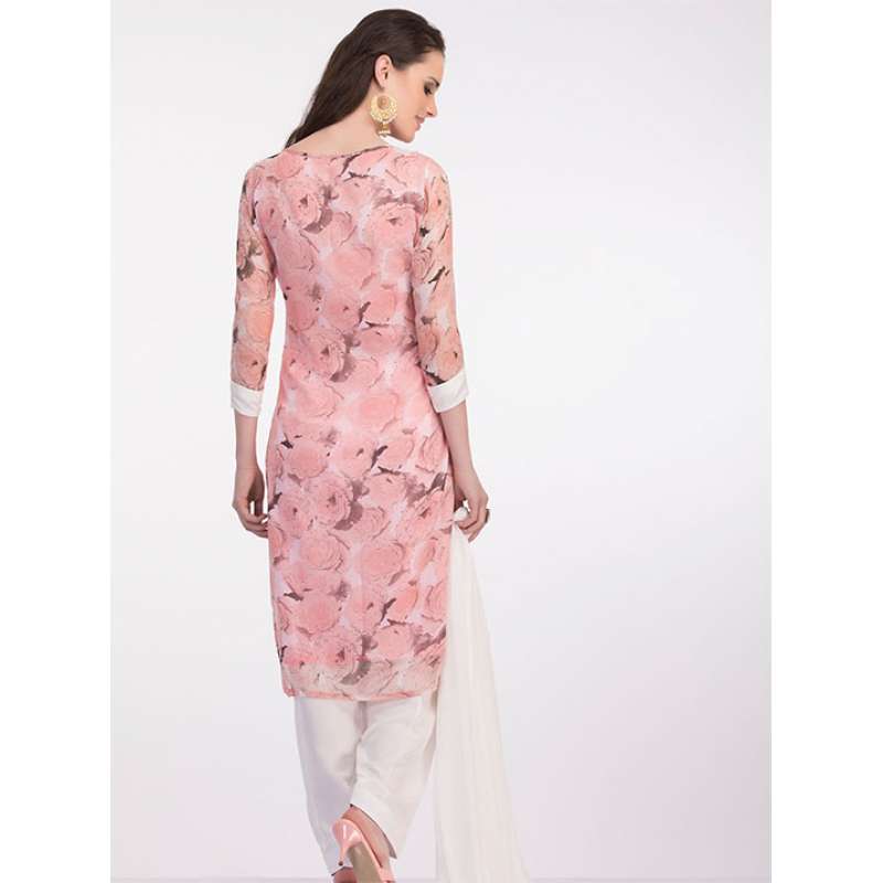 Soft pastel floral print suit with plain salwar and dupatta. Fabric : Polyester