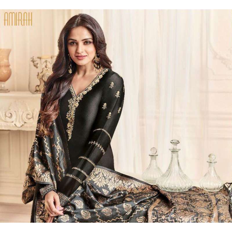 Stunning new dsigner Georgette satin silk with embroidery worked salwar kameez with Banarasi Dupatta.