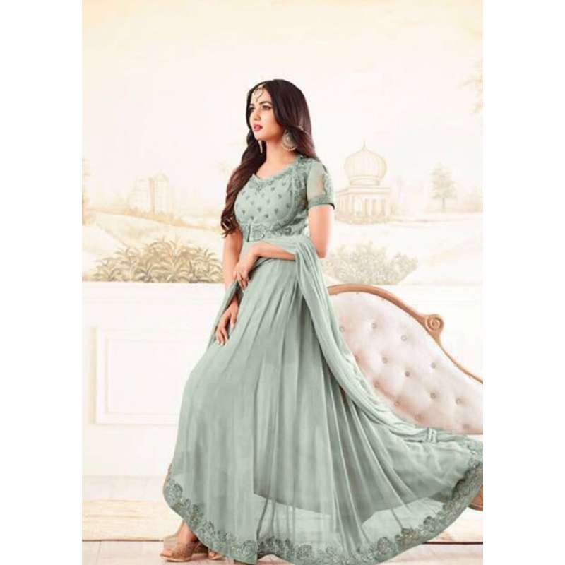 Sky Blue High Low Dress Indian Designer Anarkali Suit
