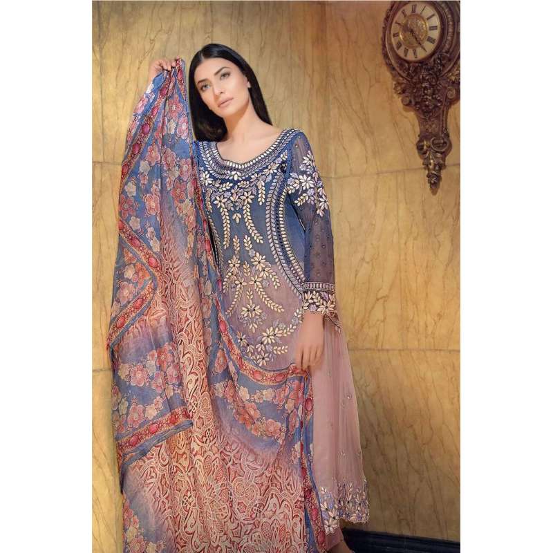 SANOBAR 2024 PINK AND BLUE PREMIUM GEORGETTE PAKISTANI STYLE SUIT