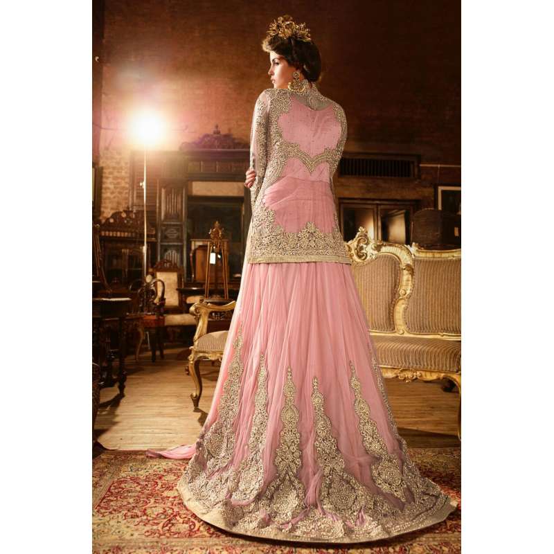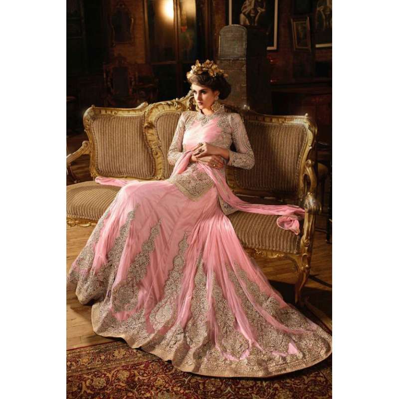 with the rich heritage of Indian aesthetics! Embrace yourself with this baby pink sybella lehenga dress. Net top, heavy japan satin inner, santoon bottom and nazmin
