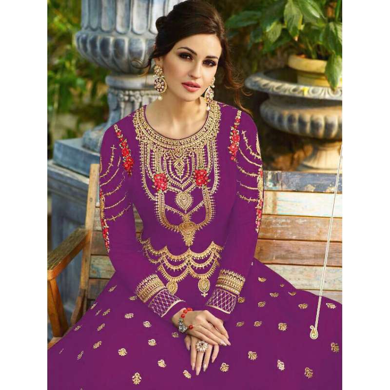 PURPLE EMBROIDERED EVENING AND WEDDING WEAR ANARKALI GOWN