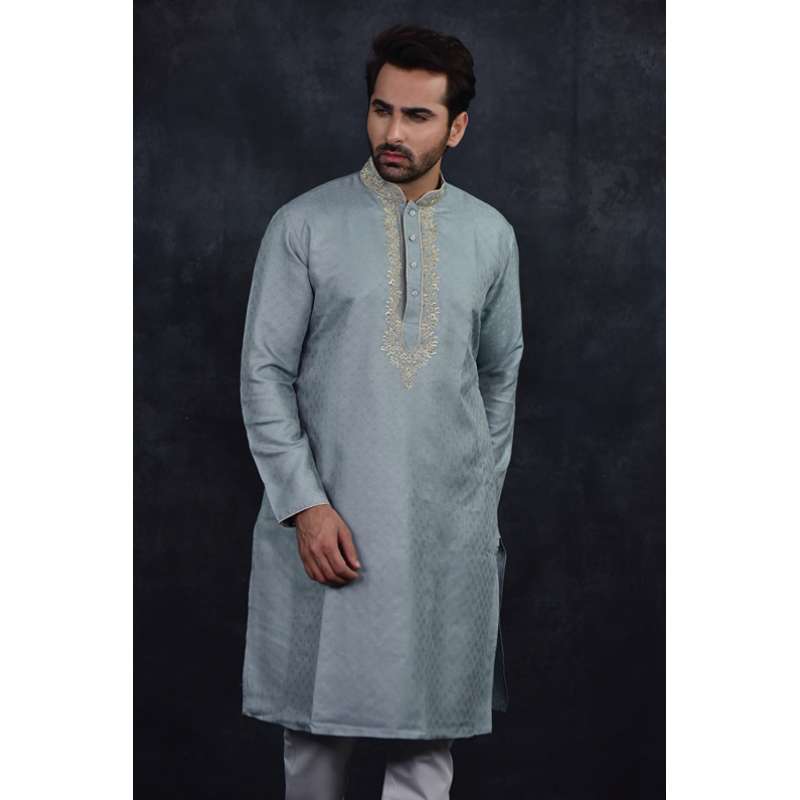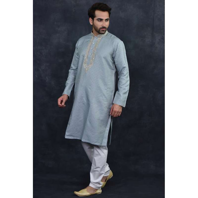 Grey Embroidered Kurta Pajama Men's Eid Suit At Asian Couture