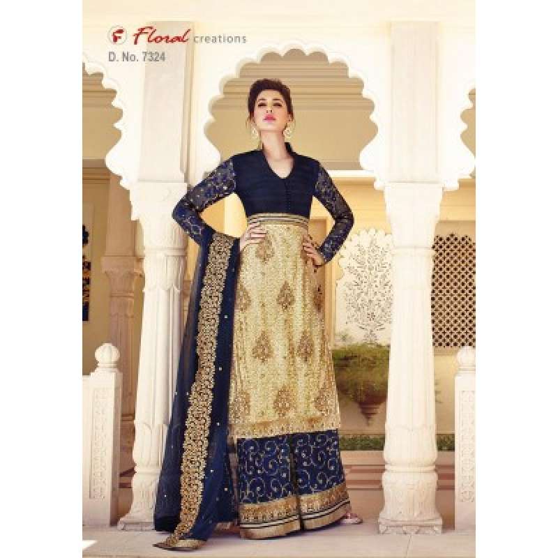 Designed for any occasion this long ANARKALI style SEMI STITCHED Dress comes in (as in picture) in pure FAUX GEORGETTEE now available semi stitched kameez style designed with Embroidered zari, sequins, work and patch border work. Available with shantoon churidar,chiffonleeves fabric and matching bordered chiffon dupatta.