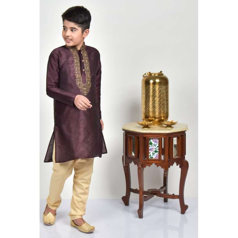 Maroon Embroidered Kurta Pajama For Boys