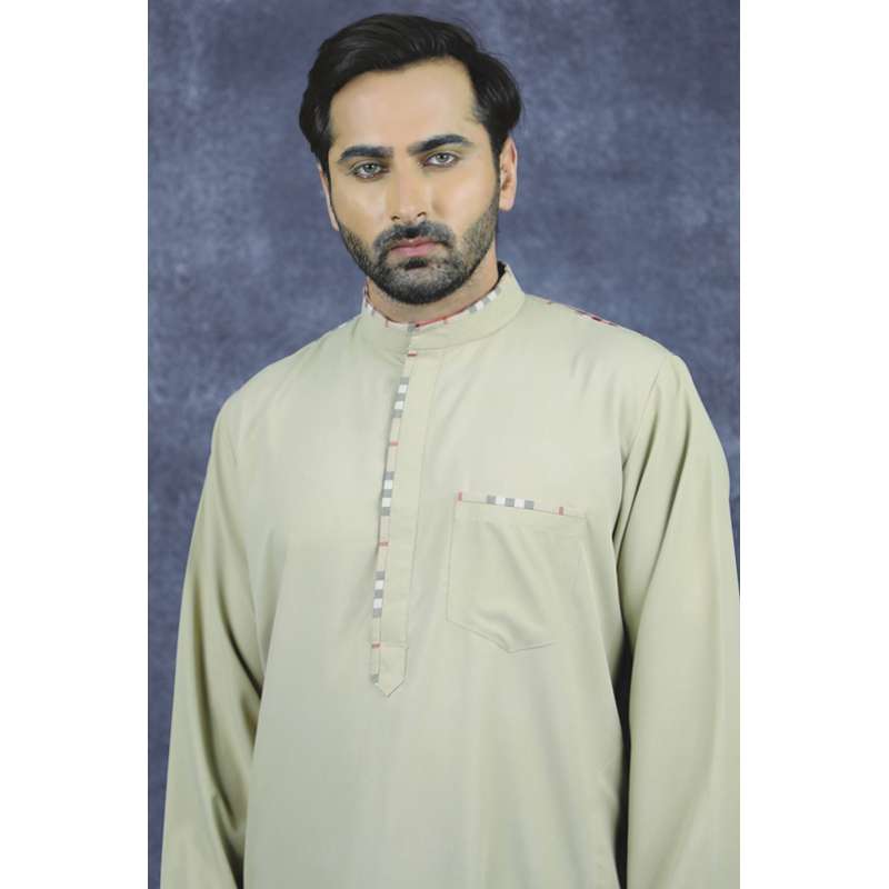 Beige Polyester Men Islamic Wear Plain Thobe Jubba