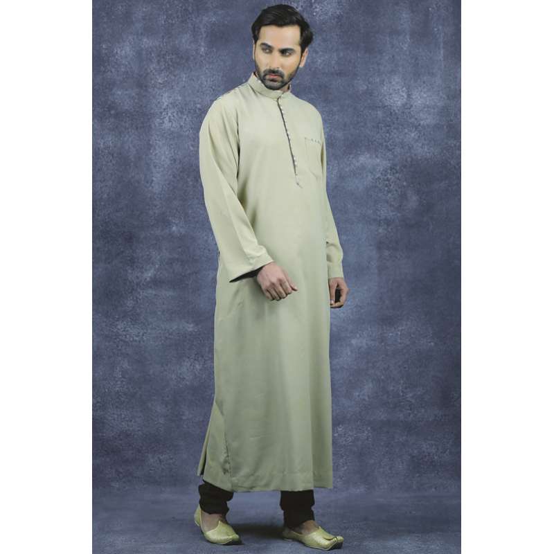 Elegant traditional Jubbah Thobes with ban neck.
