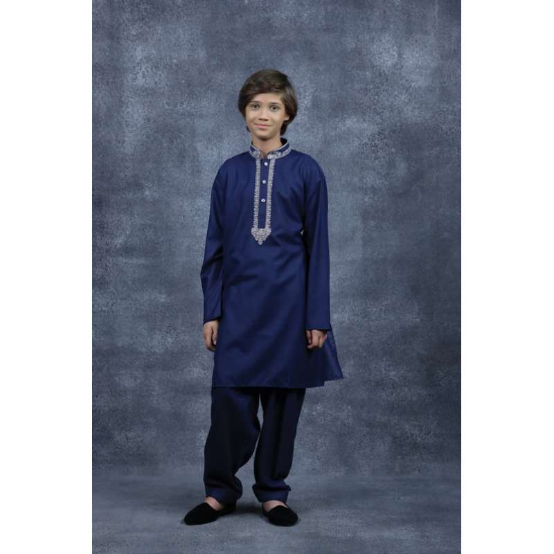 Navy Blue Designer Embroidered Shalwar Kurta for Kids