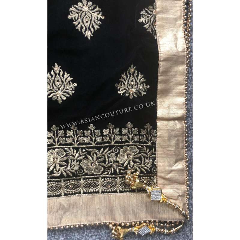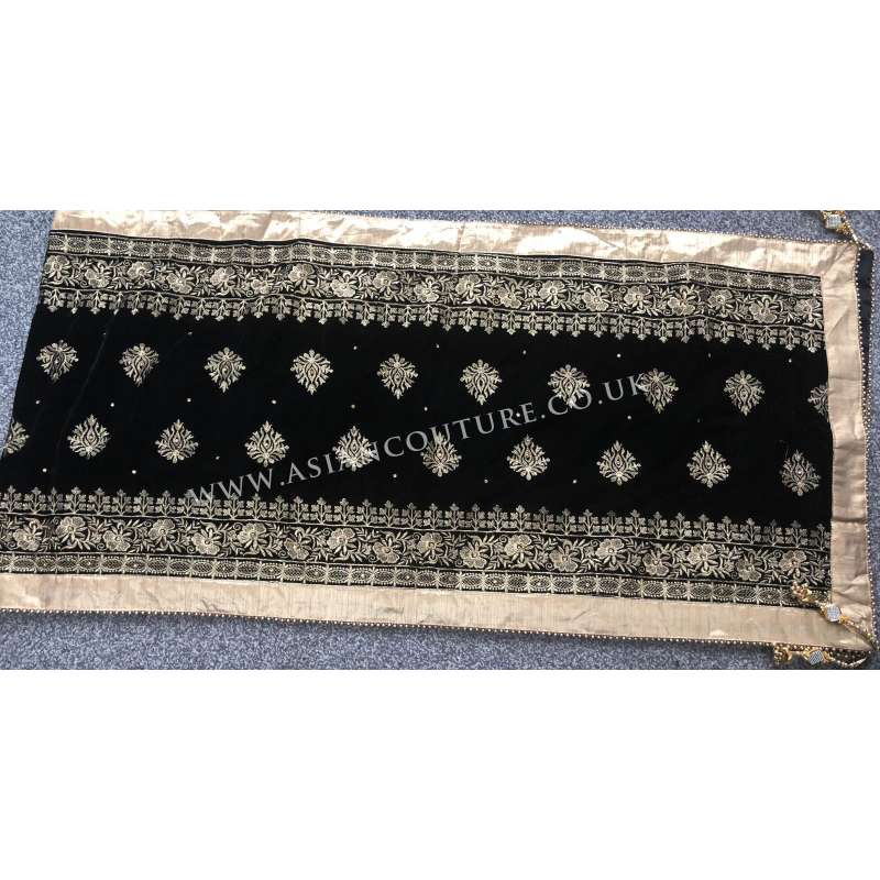 Royal Black Heavy Diamonte Embroidered Velvet Shawl