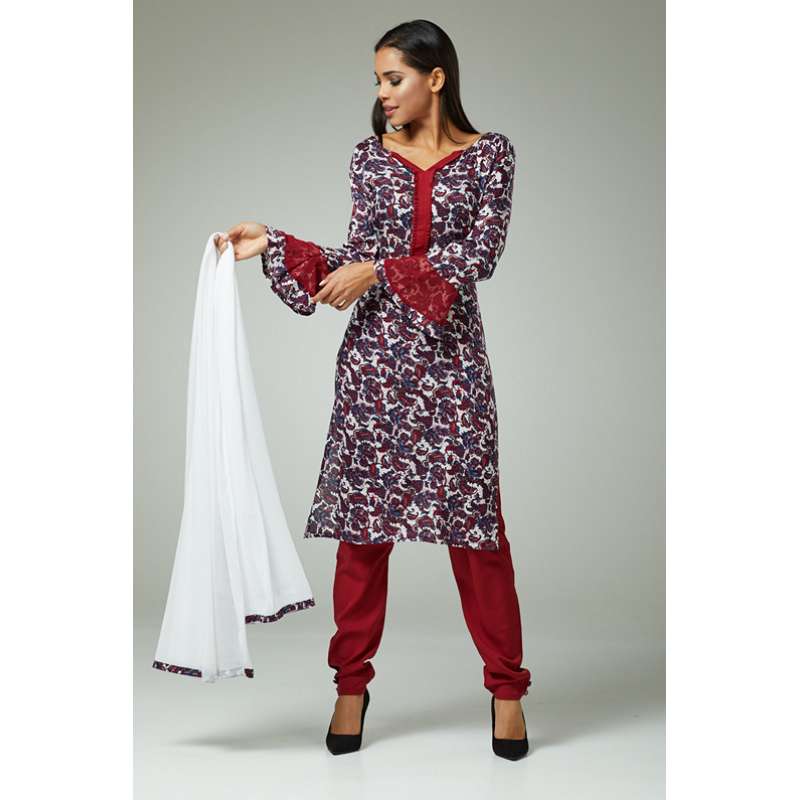 FIRED BRICK MAROON PRINTED SUMMER CASUAL WEAR SALWAR SUIT