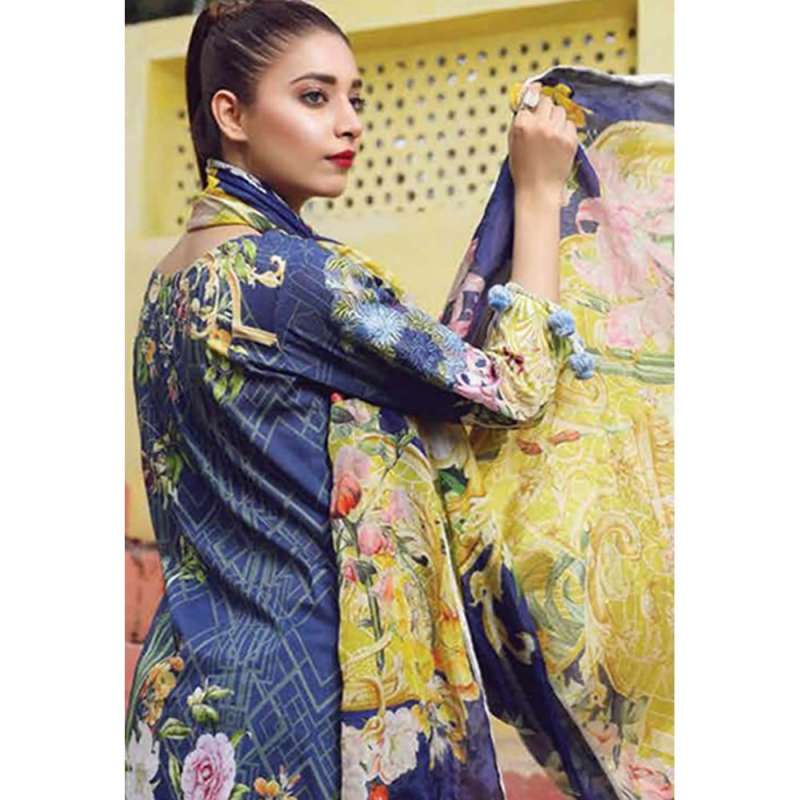 ESHAISHA D-16 BLUE LAWN EMBROIDERED SUMMER WEAR SUIT