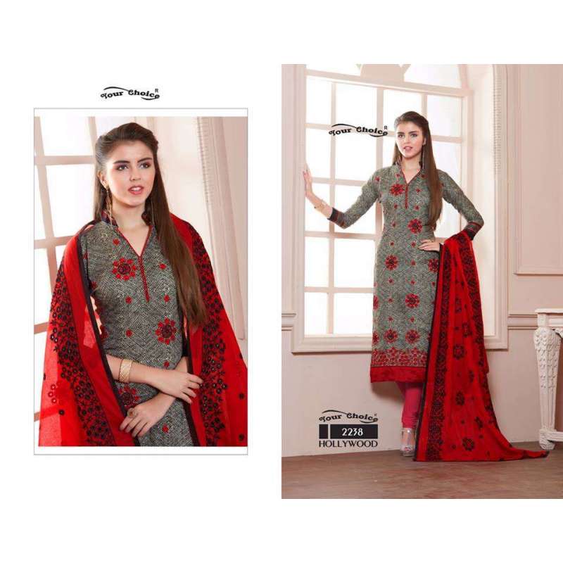 ZYC2238 RED AND GREY HOLLYWOOD YOUR CHOICE PRINTED COTTON SALWAR KAMEEZ