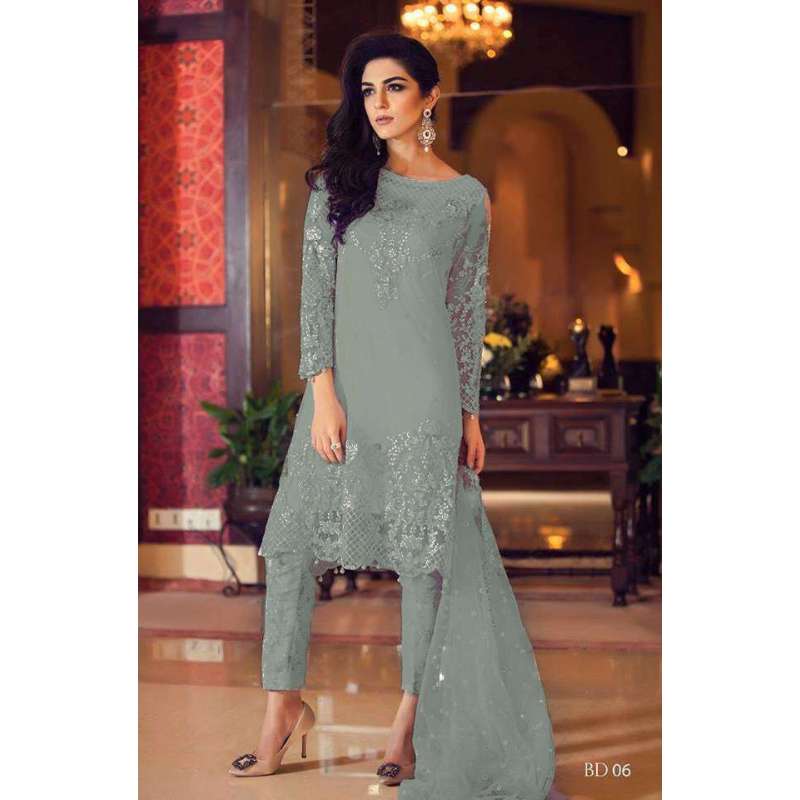 ZMB6007 GREY MARIA B STYLE PAKISTANI SALWAR KAMEEZ SUIT