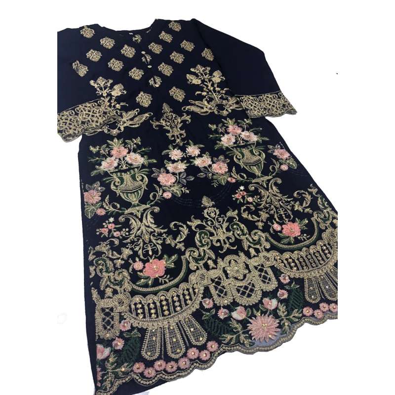 BLUE PAKISTANI DESIGNER LINED EMBROIDERED SALWAR SUIT