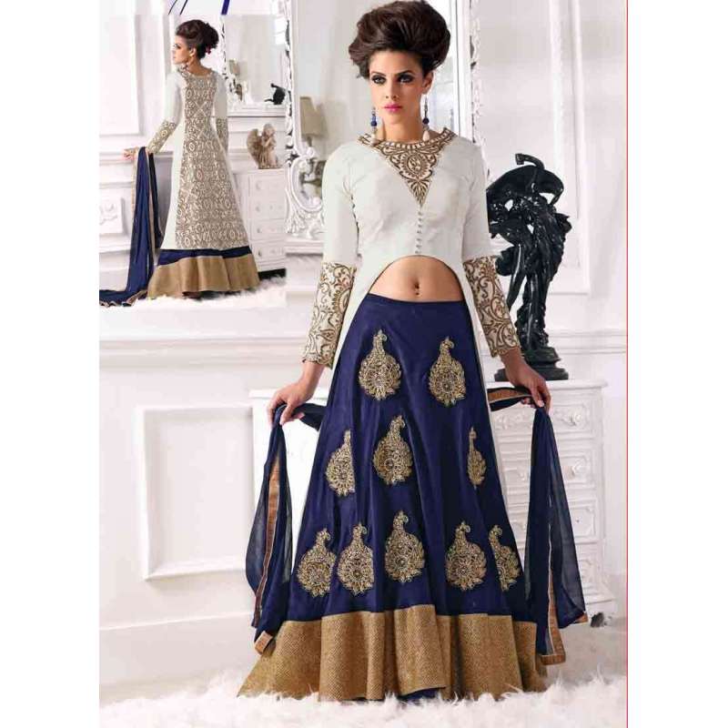 White and Blue WEDDING WEAR GEORGETTE & NET LONG ANARKALI SUIT