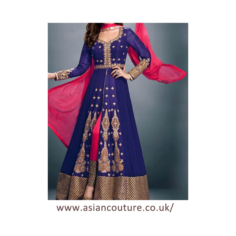 Blue Pink Indian Party Dress Designer Anarkali Suit